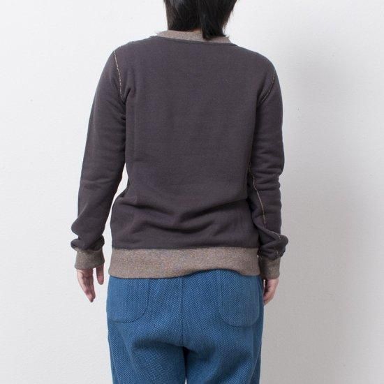裾や袖、襟元はチャコール糸に裏のブラウン綿の糸を混ぜています。