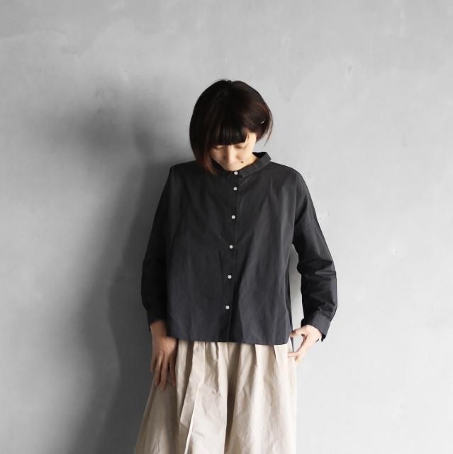 デザインは、身幅を大きくとったワイドシルエットのブラウスに仕上げ、肩の落ちる自然なAラインが生まれることで、スッキリとした印象のシルエットで着ていただけます。