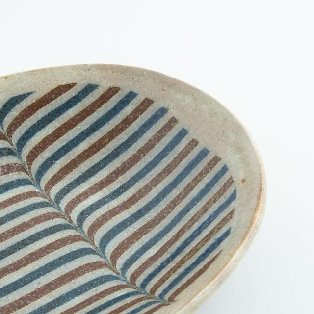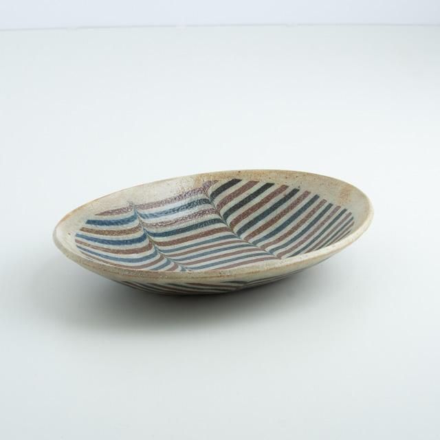 鳥取県で作陶されている牧谷窯、杉本義訓さんの練り込み楕円皿 大 07です。