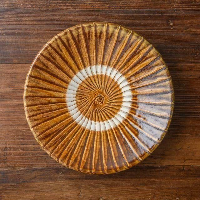 小鹿田焼 黒木昌伸窯 七寸皿 08 刷毛目 飴
