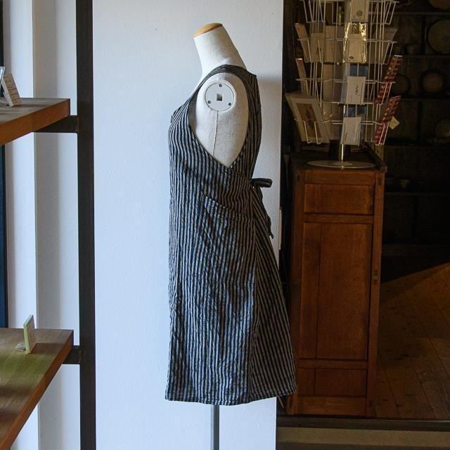harappaさんの会津木綿 エプロンドレス 01 棒縞 H-0024です。