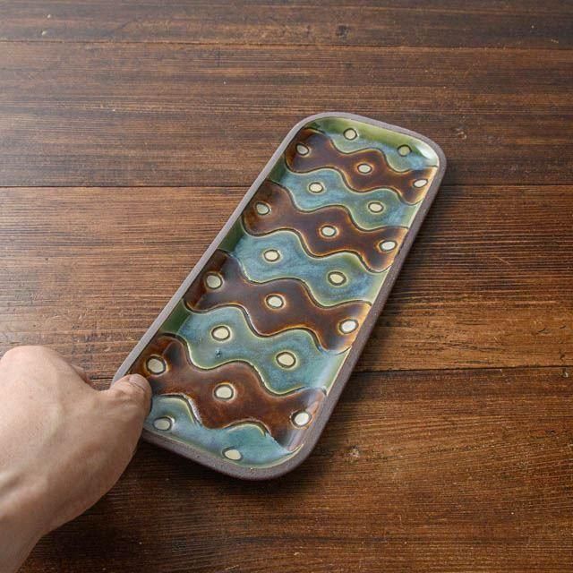 沖縄 読谷村で作陶されている一翠窯 高畑伸也さんの角皿長です。