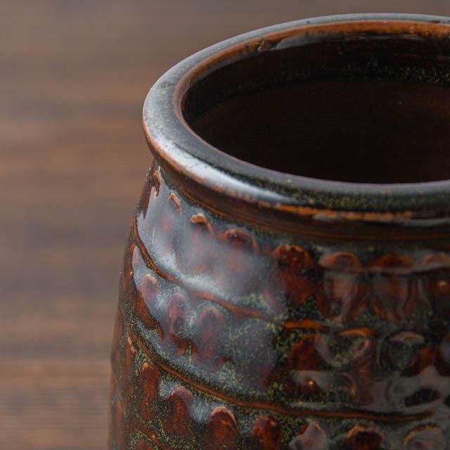まゆみ窯 真弓亮司 飴釉押紋楕円筒花器
