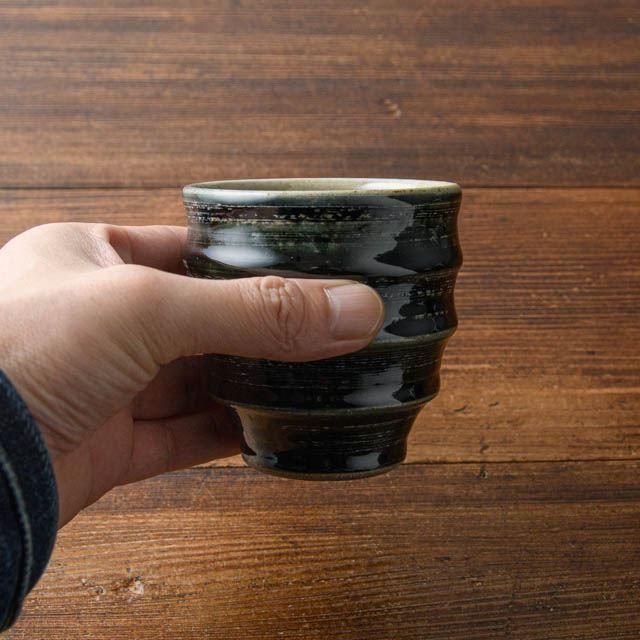 熊本県玉名で制作されるまゆみ窯、真弓亮司さんの鎬湯呑 です。