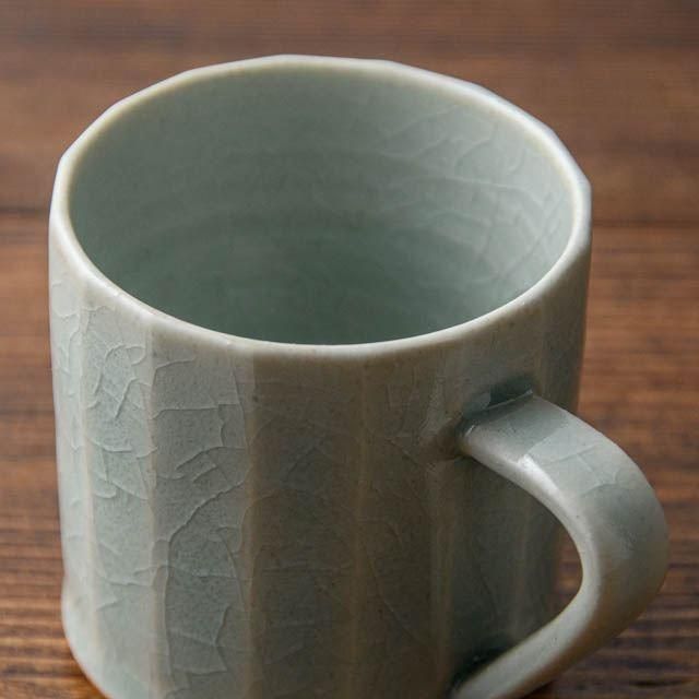福岡県八女市で作陶されている、風見窯 杉田貴亮さんの青磁釉マグカップ Sです。