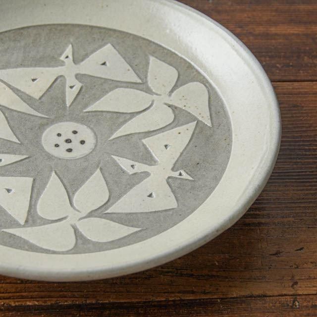 栃木県益子町で作陶されている岡田崇人さんの掻落七寸皿です。