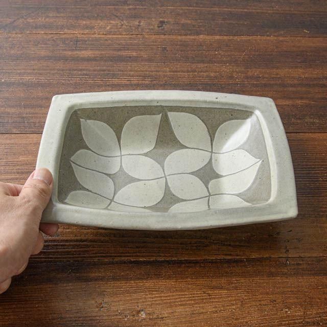 栃木県益子町で作陶されている岡田崇人さんの掻落長角鉢です。