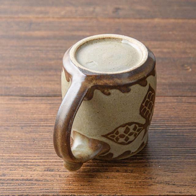 栃木県益子町で作陶されている岡田崇人さんの掻落マグカップ Lです。