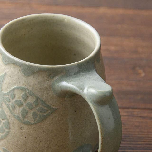 栃木県益子町で作陶されている岡田崇人さんの掻落マグカップ Lです。