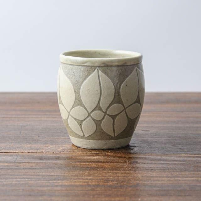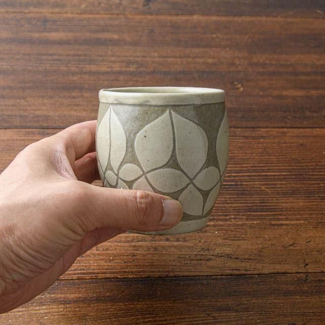 栃木県益子町で作陶されている岡田崇人さんの掻落カップです。
