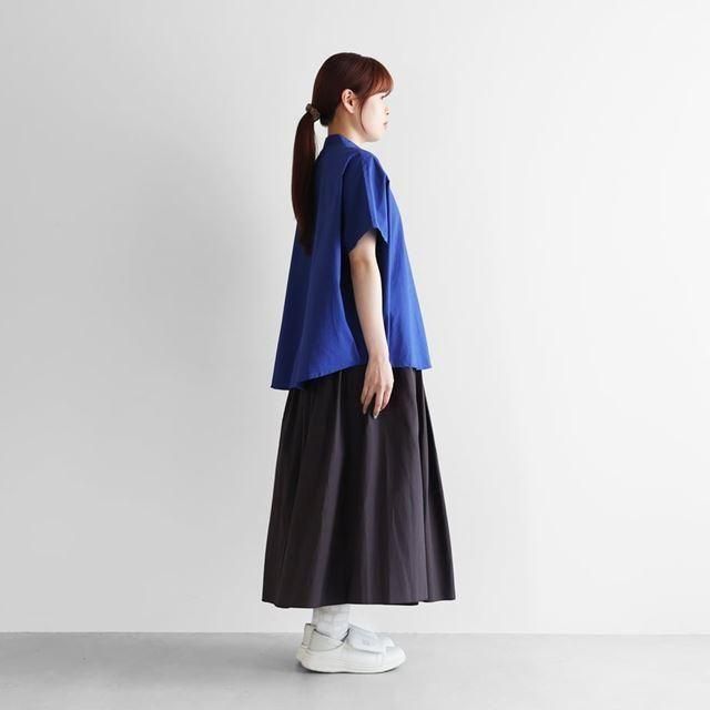 HUISさんのオーガニックコットンバンドカラー半袖ワイドブラウス (マリンブルー)です。