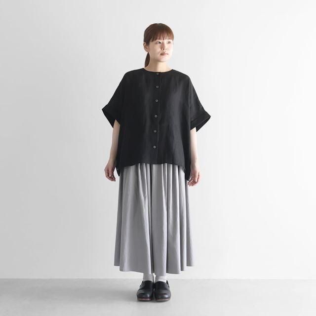 HUISさんのシャトルリネンライトバックボタン2way半袖ブラウス(ブラック)レディスです。