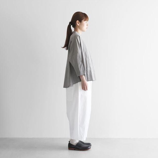 低速のシャトル織機で織られたバフクロスを使用したシンプルなワイドパンツです。