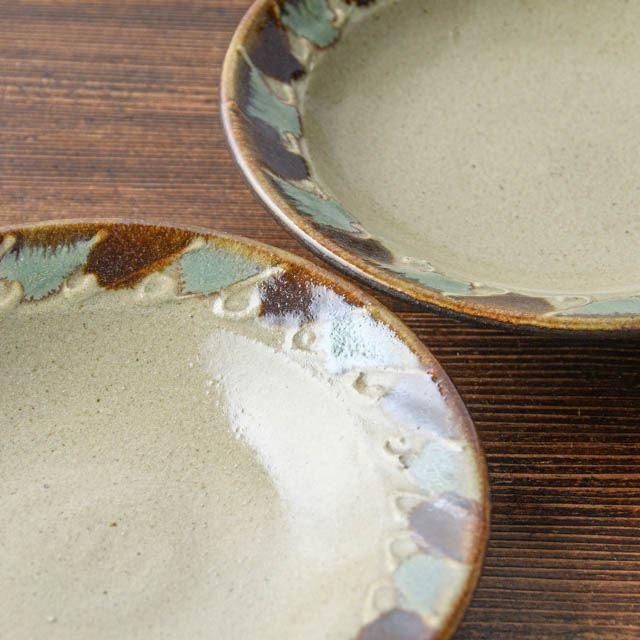 沖縄の読谷村で作陶されている工房マチヒコ 町田智彦さんの五寸五分リム皿です。