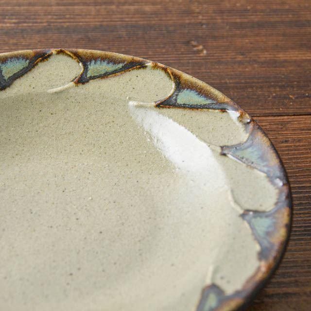 沖縄の読谷村で作陶されている工房マチヒコ 町田智彦さんの五寸五分リム皿です。