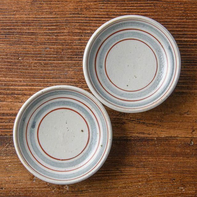 冨本大輔 三寸皿 01 灰釉絵付 淡呉須×赤線