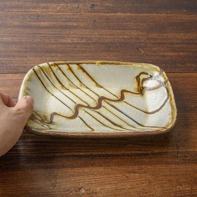 熊本、小代焼ふもと窯 井上尚之さんのスリップ 角皿 中です。