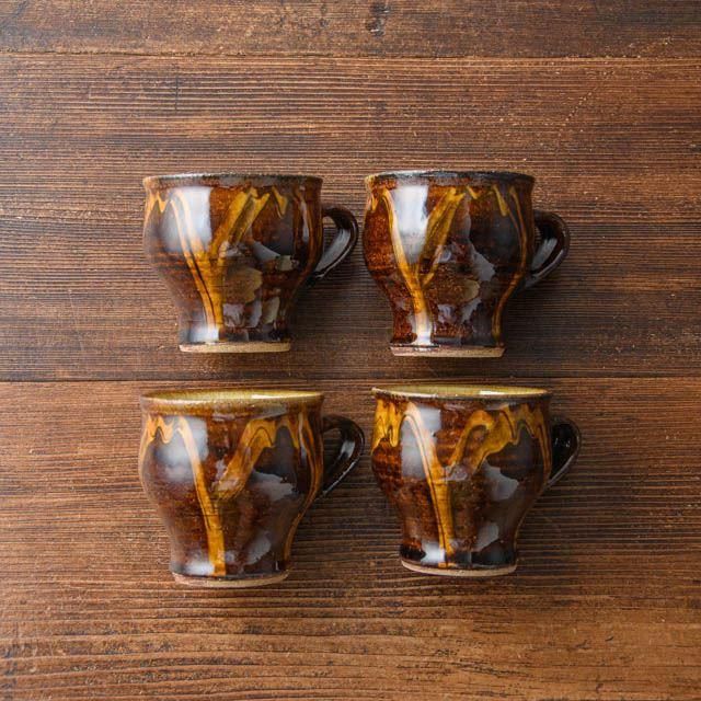 小岱山の麓で産出される鉄分の多い粘土を原料に、灰釉のかけ流し模様を特徴とする小代焼は四百年の歴史を持つ焼き物です。