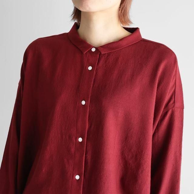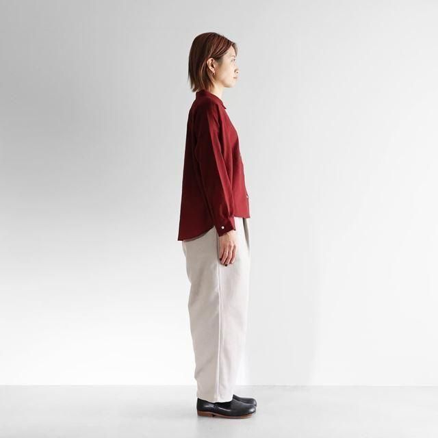 遠州織物 HUISさんのウォッシャブルウールワイドブラウス(ダークレッド)レディスです。