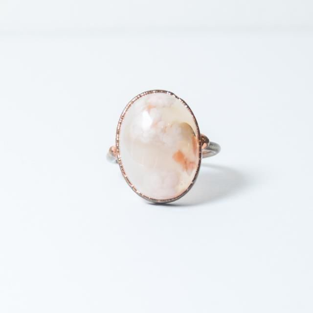 岡山で天然石アクセサリを制作されるpibicoさんのマダガスカル産 桜めのう 原石 リング 約12号 153です。