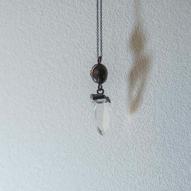 岡山で天然石アクセサリを制作されるpibicoさんのサファイア X コロンビア 原石 ペンダントネックレス 217です。