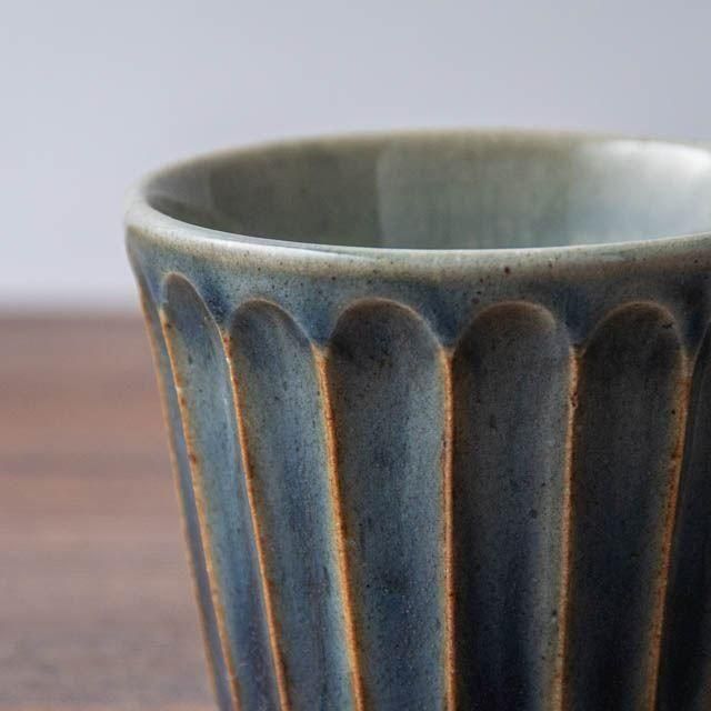 袖師窯 尾野友彦 しのぎフリーカップ青 小