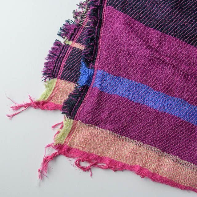 播州織の多彩な柄で限界までやわらかく織ったショールは、肌触りがやさしく巻いていて気持ちが良いです。