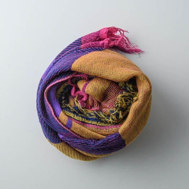 播州織の多彩な柄で限界までやわらかく織ったショールは、肌触りがやさしく巻いていて気持ちが良いです。