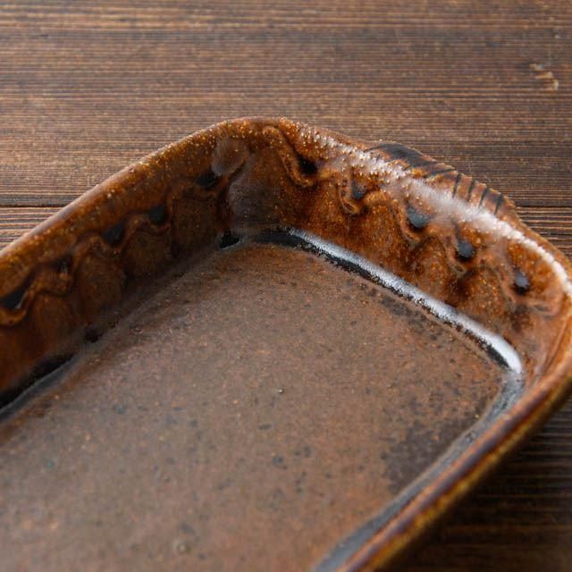 大阪府高槻で作陶されている中ノ畑窯、佐藤央巳・友美さんの角グラタン皿 Sです。