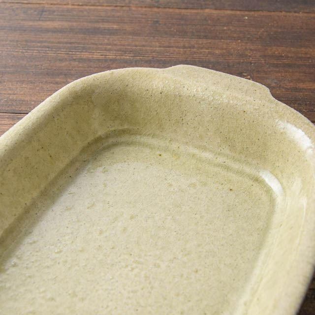 大阪府高槻で作陶されている中ノ畑窯、佐藤央巳・友美さんの角グラタン皿 Lです。