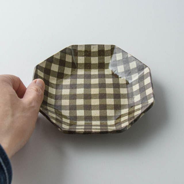 鳥取県で作陶されている牧谷窯、杉本義訓さんの練り込み八角皿 中です。