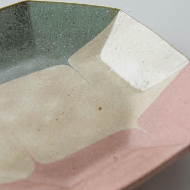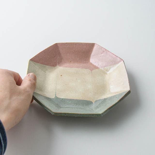 鳥取県で作陶されている牧谷窯、杉本義訓さんの練り込み八角皿 大です。