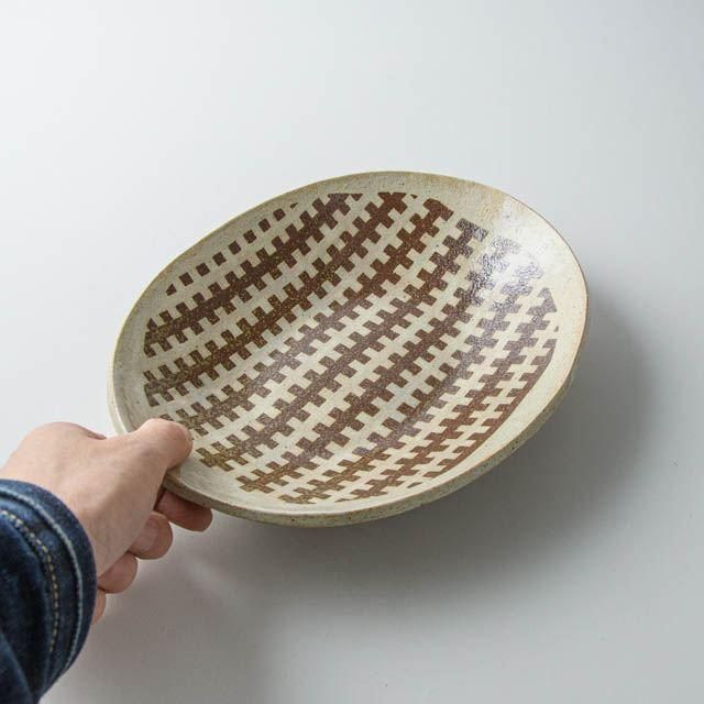 鳥取県で作陶されている牧谷窯、杉本義訓さんの練り込み楕円皿 大です。