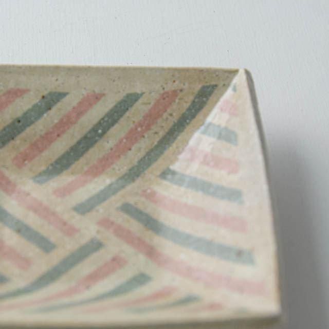 鳥取県で作陶されている牧谷窯、杉本義訓さんの練り込み角鉢 小です。