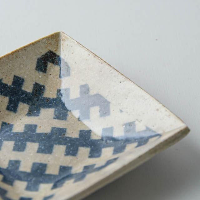鳥取県で作陶されている牧谷窯、杉本義訓さんの練り込み角鉢 小です。