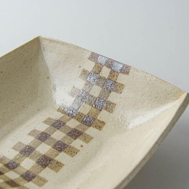 鳥取県で作陶されている牧谷窯、杉本義訓さんの練り込み角鉢 大です。