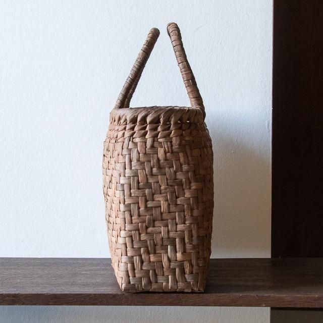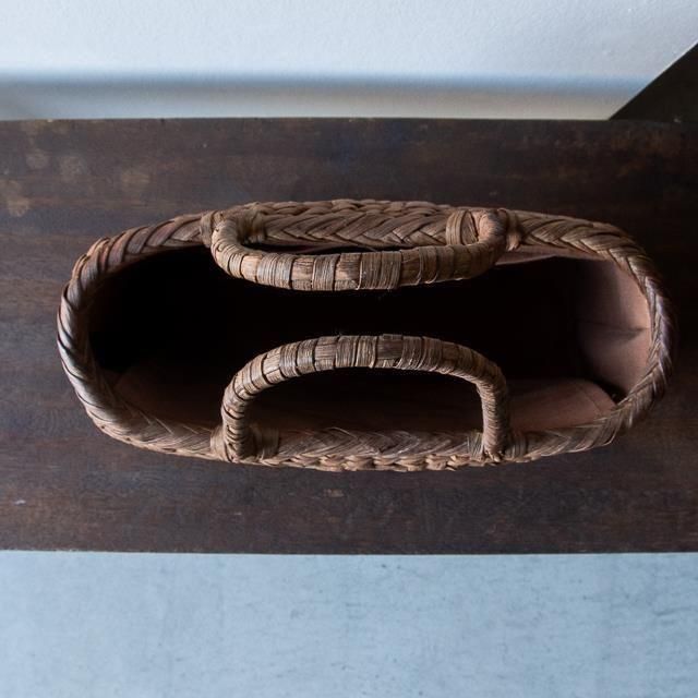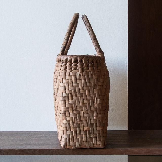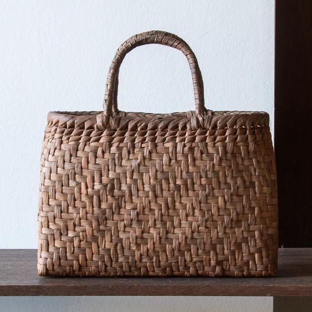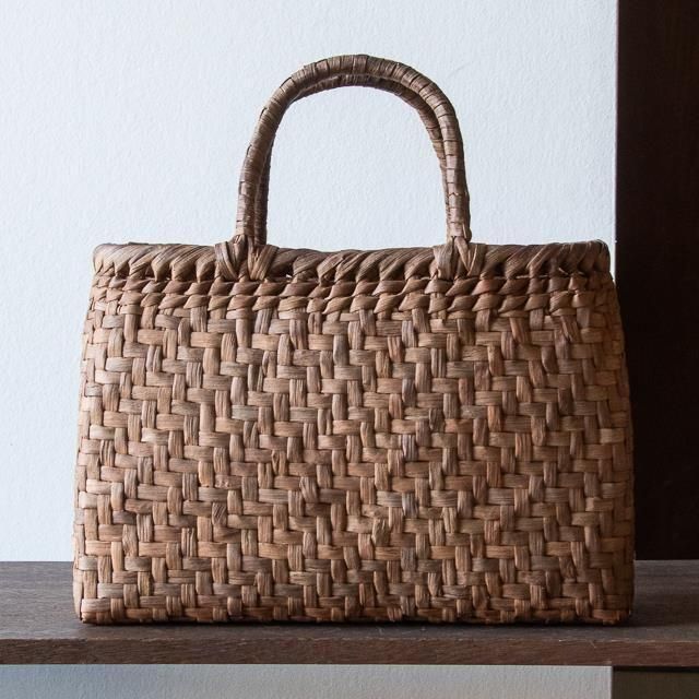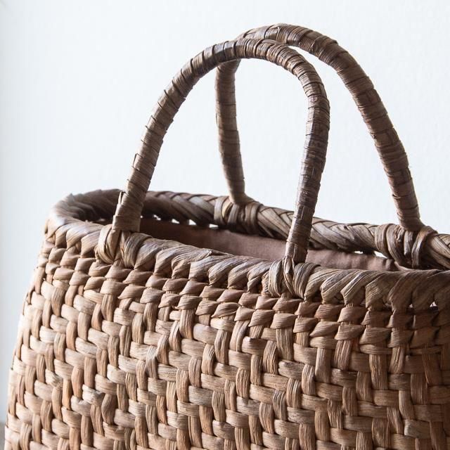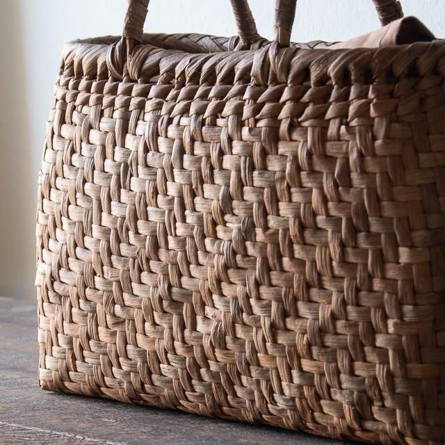 山ぶどうの樹皮を使い、長野県の作り手の方が籠に編み上げていきます。