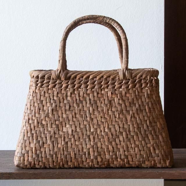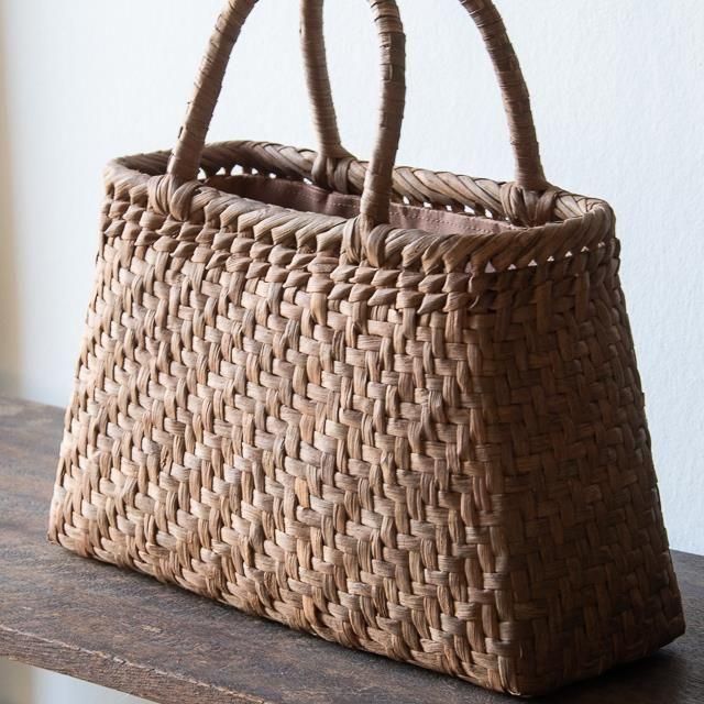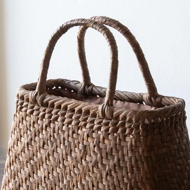 山ぶどうの樹皮を使い、長野県の作り手の方が籠に編み上げていきます。