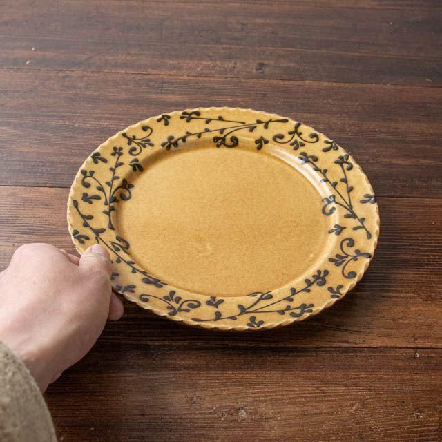 久保田健司 益子 リムプレートL 唐草 黄 01