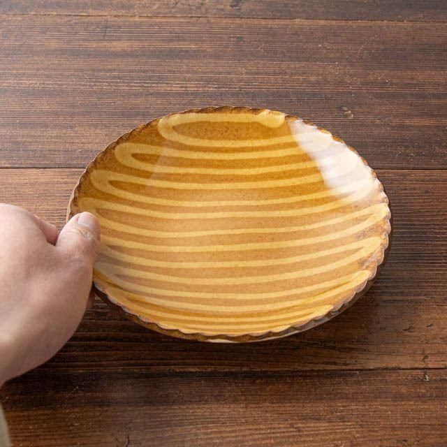 久保田健司 益子 スリップウェア丸皿S 黄 05