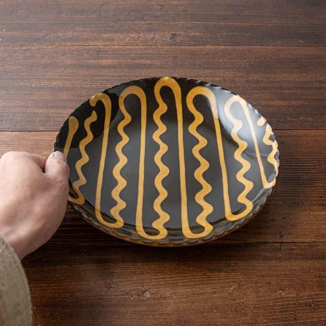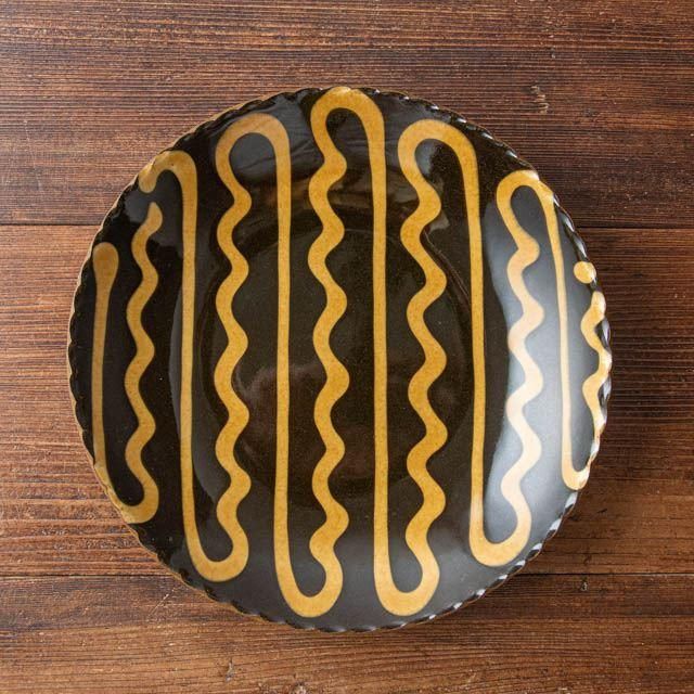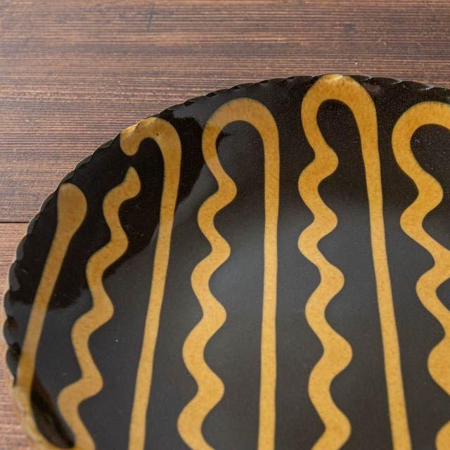 久保田健司 益子 スリップウェア丸皿L 黒 03